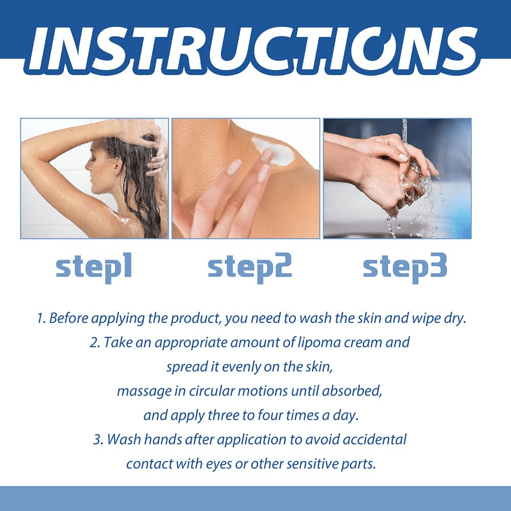 Apply: Using clean fingertips, apply a small amount of the Herbal Lipoma Removal Cream to the lipoma.